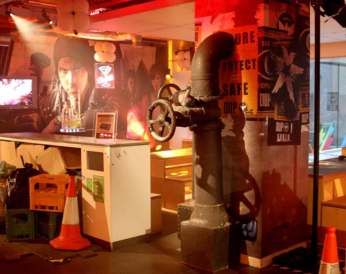 Packaging and campaign designs for Sony PlayStation’s Infamous Second Son, including an immersive takeover for the launch party.
