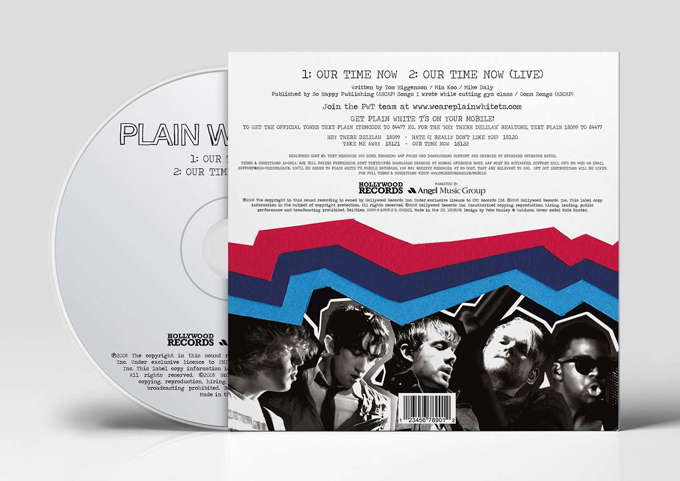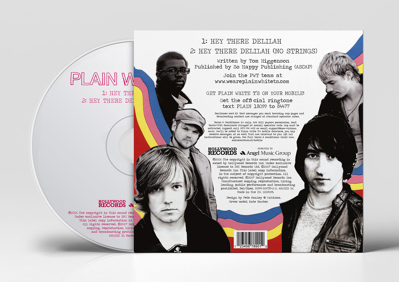 CD and 7" designs for American pop rock band Plain White T’s Billboard Hot 100 No. 1 hit and Grammy-nominated song “Hey There Delilah,” and its follow-up single “Our Time Now.”