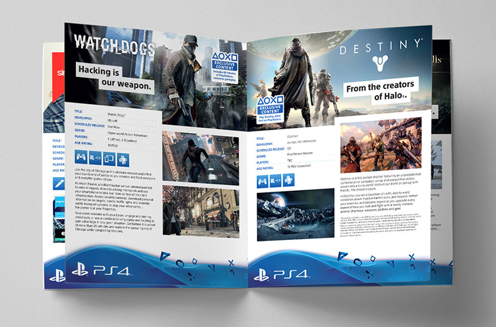 Client: PlayStation Campaign: PS4 - This Is For The Players Description: Packaging + Brochures + Advertising