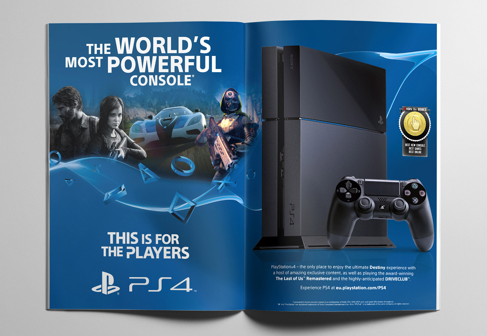 Packaging and marketing materials for Sony Computer Entertainment’s PlayStation 4 “This is for the Players” launch campaign.